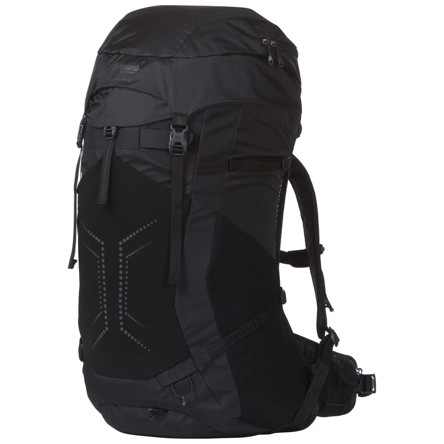 Unsere Vengetind-Serie besteht aus technisch fortschrittlichen leichtgewichtigen Rucksäcken mit einem einzigartigen Tragesystem. Der Vengetind W 42 wurde speziell für die weibliche Anatomie entwickelt. Die perfekte Wahl, wenn du auf der Suche nach einem passenden, leistungsstarken Allround-Rucksack mit verstellbarer Rückenlänge bist. Der Rucksack verwendet die VentiLightTM-Technologie, eine Neuheit unseres Hauses bezüglich leichtgewichtiger funktioneller Tragesysteme. Ein aufgespannter Meshrücken, Schulterriemen und Hüftgurt sorgen für eine hervorragende Belüftung und machen den Vengetind W 42 zu einem reinen Tragevergnügen, und dies auch bei sportlichen Anstrengungen. Der Rucksack ist für die Aufnahme eines Trinksystems vorbereitet und bietet viele Befestigungsmöglichkeiten für Eispickel, Wanderstöcke und dergleichen.