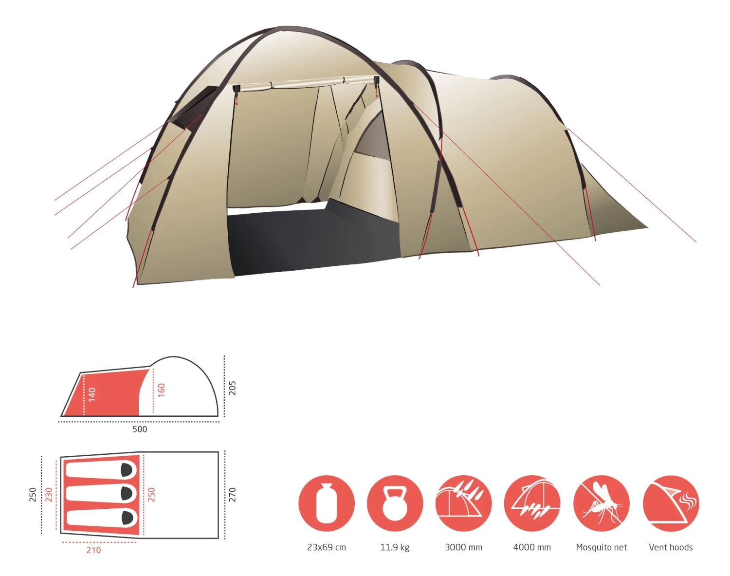 Das Grand Canyon Atlanta 3-Personen Zelt ist eine Kombination aus Kuppel- und Tunnelzelt und bestens für Familien geeignet. Es bietet ein tolles Raumgefühl und schützt vor Wind und Wetter. Die große Apsis vor dem geräumigen Schlafbereich hat Stehhöhe und bietet Ihnen die Möglichkeit, den Campingausflug mit der Familie oder Freunden zu genießen, auch wenn sich die Sonne nicht zeigt oder der Regen Sie dazu zwingt, im Zelt zu bleiben. Das Zelt verfügt über große abgedeckte Belüftungsöffnungen auf der Außenplane für eine angenehme Luftzirkulation und ein gutes Raumklima. Der Eingang kann als Sonnenschutz aufgestellt werden.