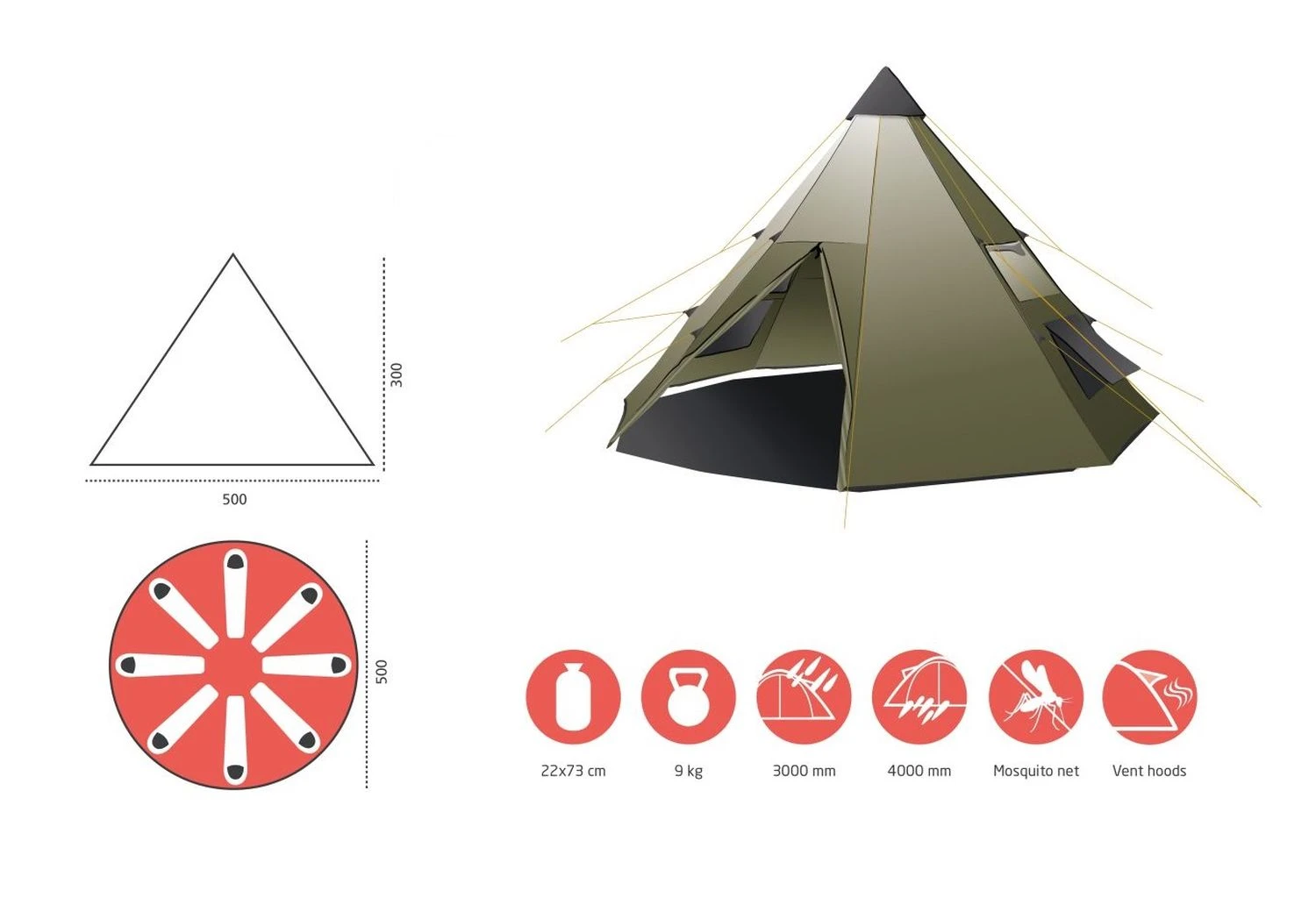 BLACK FALLS 8 ist ein traditionelles Zelt im Tipi-Stil, besteht jedoch aus modernen Materialien für einen leichten und einfachen Transport. Es lässt sich sehr einfach aufbauen – Zelt ausbreiten, Stange einstecken und im Boden befestigen. Schon ist der Schlafbereich für bis zu 8 Personen oder der Gruppentreffpunkt fertig. Die separate Bodenplane schützt vor Schmutz und Schlamm, kann jedoch auch zu Hause gelassen werden, wenn sie nicht benötigt wird. Die großen Belüftungsöffnungen mit Abdeckung und die Moskitonetze auf der Außenplane sorgen für eine hervorragende Luftzirkulation und ein angenehmes Raumklima im Innenzelt.