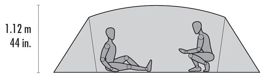 – Maximaler Platz: Viel Bewegungsfreiheit im Kopf- und Ellenbogenbereich im gesamten Zelt, zwei große Eingangsbereiche seitlich bieten Platz für die Ausrüstung.