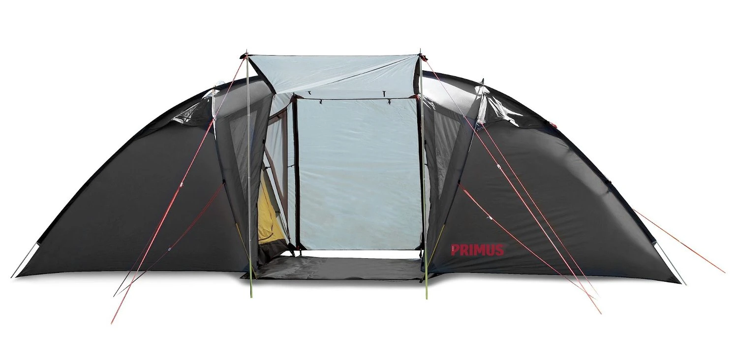 Das Primus Bifrost H6 ist ein großes Zelte mit Schlafplätzen für 6 Personen und einer Stehhöhe für Erwachsene. Zwischen den beiden Schlafinnenzelten befindet sich ein großzügiger Wohnbereich. Die Ventilationsöffnungen und das Mückennetz sorgen für gute Belüftung. Das Aluminiumgestänge sorgt für hohe Stabilität, die Farbkodierung der Stangen vereinfacht das Aufstellen. Geeignet für viele Einsatzbereiche wie Camping, Paddeln, Segeln oder als zusätzliche Überdachung im Garten. Das Außenzelt aus PU-beschichtetem Polyester hat eine Wassersäule von 3000 mm. Das Innenzelt ist aus Oxford Polyester gefertigt. Der Boden hat eine Wassersäule von 7000 mm. Das Zelt ist mit Sturmleinen ausgestattet. Die Zelte verfügen über blickdiche Fenster und einen Boder, der einfach wzischen den beiden Schlafbereichen angeknöpft wird. Zudem sind die Zelte mit Aufstellstangen ausgestattet, so dass der Eingangsbereich als Regenschutz oder als Schattenspender dient.