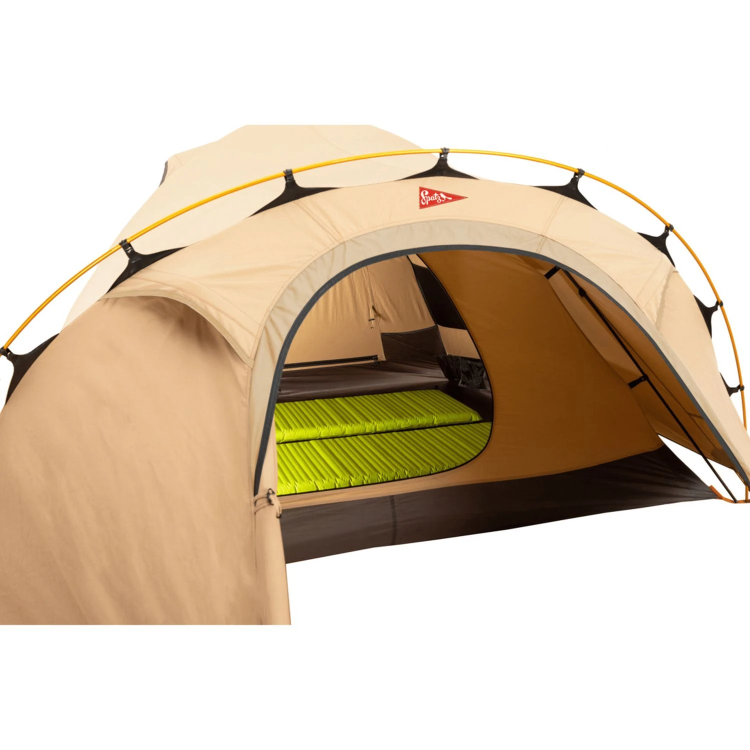 Leichtes Zelt mit viel Stauraum für längere Reisen.