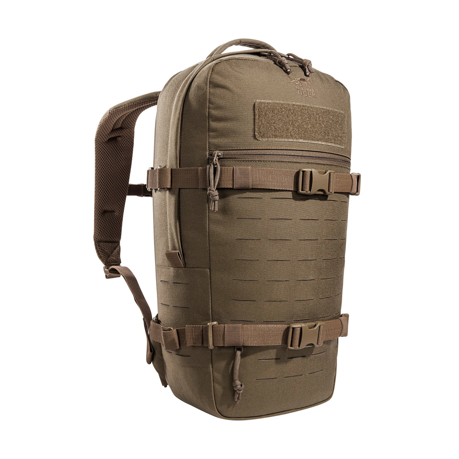 Modularer Daypack mit 18 Liter Volumen. Das Hauptfach des Tagesrucksacks ist an der inneren Rückwand mit Molle-Klett belegt und ermöglicht so die Bestückung mit Kletttaschen. Das flache Reißverschluss-Frontfach eignet sich zur Unterbringung von Dokumenten, Laser Cut-MOLLE auf der Front und an den Seiten erlaubt die individuelle Erweiterung.