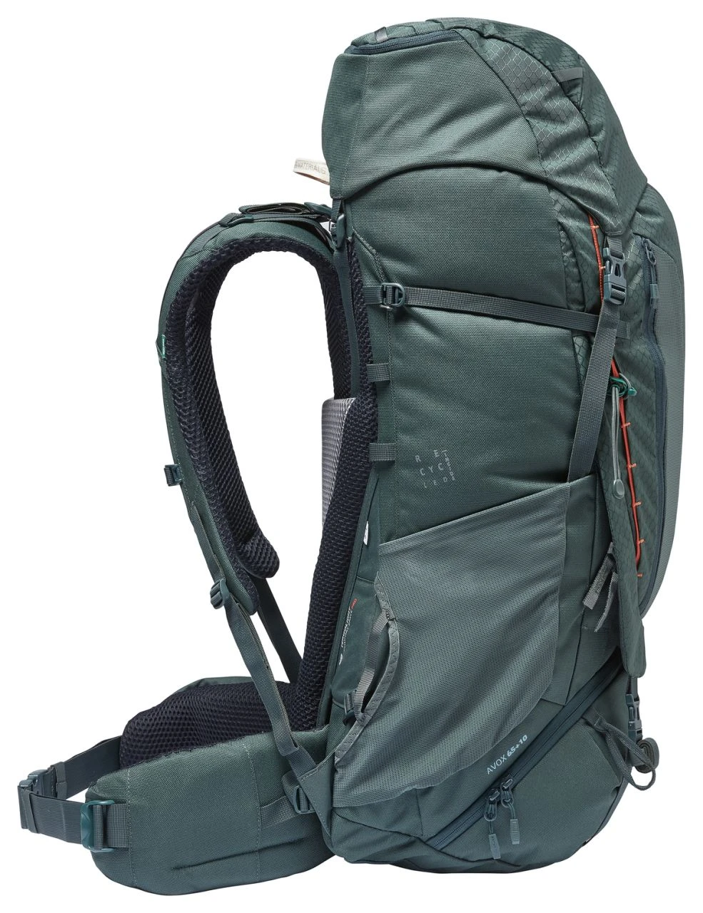Auf in die unberührte Natur! Auf langen Touren in abgelegenen Regionen transportieren Trekkingprofis mit dem großen Trekkingrucksack mit 65 Liter Volumen Verpflegung und Ausrüstung für mehrere Wochen – egal, ob Trekking in Island oder Südamerika. Das Tergolight Comfort Space Pro-Tragesystem gewährleistet optimale Gewichtsverteilung bei schweren Lasten. Die spezielle Rückenpolsterung des Trekkingrucksacks entlastet das Iliosakralgelenk – der Spalt im unteren Rückenbereich kann Druckschmerzen vorbeugen. Die gepolsterten Ergoshape-Schulterträger entlasten zusätzlich und bieten Bewegungsfreiheit für die Arme. Rückenlänge sowie Lastenpositionierung sind individuell anpassbar und sorgen für den korrekten Sitz des Trekkingrucksacks. Der dick gepolsterte Hüftgurt mit Tasche sorgt für extra hohen Tragekomfort. Das Gepäck lässt sich von oben und vorne aus dem Hauptfach entnehmen. Ein Schlafsack o. ä. passt ins separate Bodenfach. Alles, was unterwegs griffbereit sein soll, nimmt die Fronttasche auf. Die Seitentaschen sind erreichbar, ohne den Trekkingrucksack abzusetzen. Die Daisy Chain und die variabel positionierbaren Kompressionsriemen bieten viel Befestigungsmöglichkeiten für weitere Ausrüstung. Unter dem Deckel befindet sich für den Fall des Falles eine Ersatzschnalle. Der höhenverstellbare, abnehmbare Deckel ermöglicht die Zuladung von weiteren 10 Litern – dieser lässt sich zudem zur Hüfttasche umfunktionieren. Auch bei großem Gepäck kann sich der Kopf vor dem Deckel frei bewegen. Mit der integrierten Regenhülle trotzt der Trekkingrucksack jedem Wetter. Das Hauptmaterial ist zu 100 % recycelt und extrem robust und abriebfest. Unser VAUDE Green Shape-Label gewährleistet ein umweltfreundliches, funktionelles Produkt aus nachhaltigen, bluesign® zertifizierten Materialien.