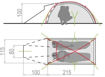 • Außenzelt: 88% Polyamid, 12% Polyester; 30/40 D Ripstop both sides Silicone coated 3.000 mm;